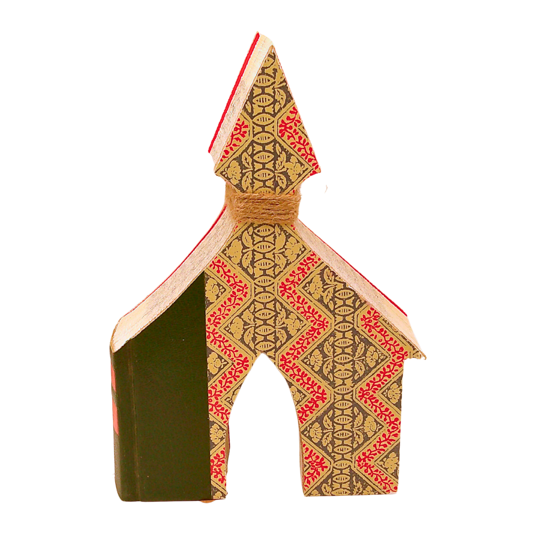 This unique piece features a Reader's Digest book skillfully carved into the silhouette of a church, blending literary charm with artistic craftsmanship.