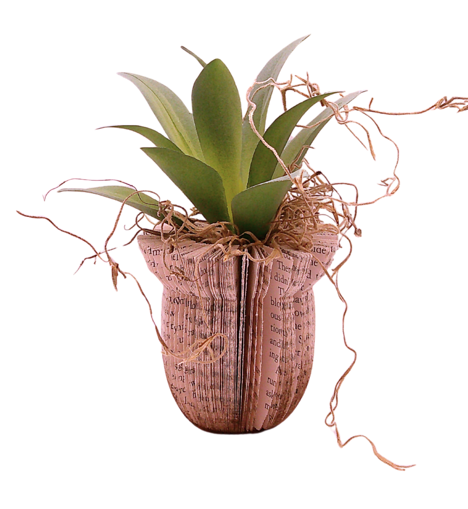 This unique plant pot crafted from a book features a lifelike faux plant, adding a charming literary touch to your decor.